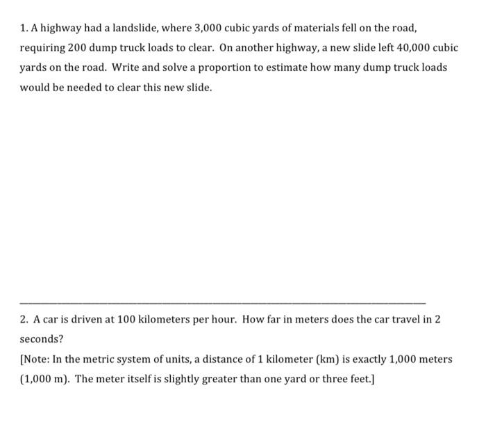 Solved 1 A Highway Had A Landslide Where 3 000 Cubic Yards Chegg Com